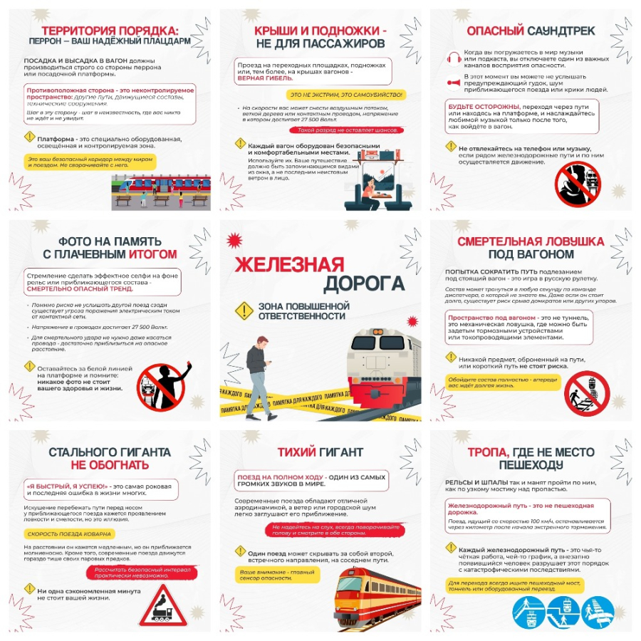 В целях снижения риска травмирования детей и подростков в зоне движения поездов на сети ОАО «РЖД» в сентябре 2025 г. проводится детский месячник «Уступи дорогу поездам!», направленный на формирование у несовершеннолетних граждан культуры безопасного поведения на объектах железнодорожного транспорта.